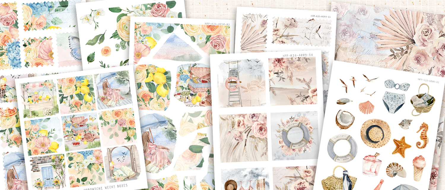 A selection of printable stickers and vellum/papers available as instant downloads.