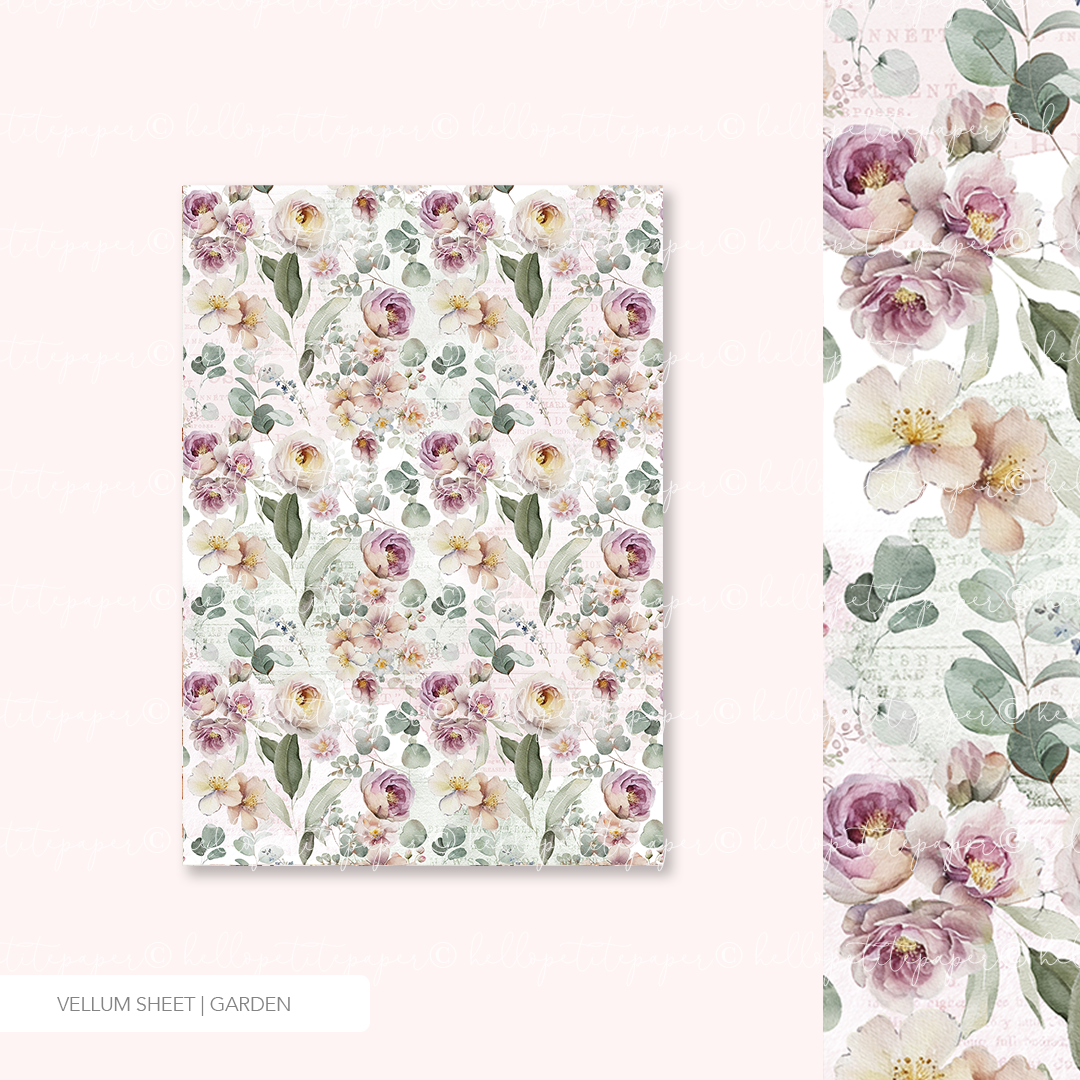 Beautiful patterned vellum sheet, matching the Garden collection, in A4 size measuring 210x297mm or 8.3x11.7in
